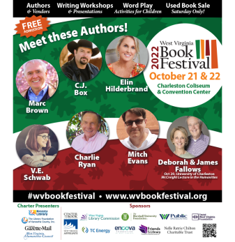 The 2024 West Virginia Book Festival will be held at the Charleston Coliseum and Convention Center on Saturday, October 19. It will feature presentations from bestselling national authors, local and regional authors, writing workshops, family activities, a literary marketplace, a