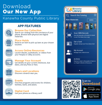 The Kanawha County Public Library Mobile App is available for free download on Apple and Android devices.