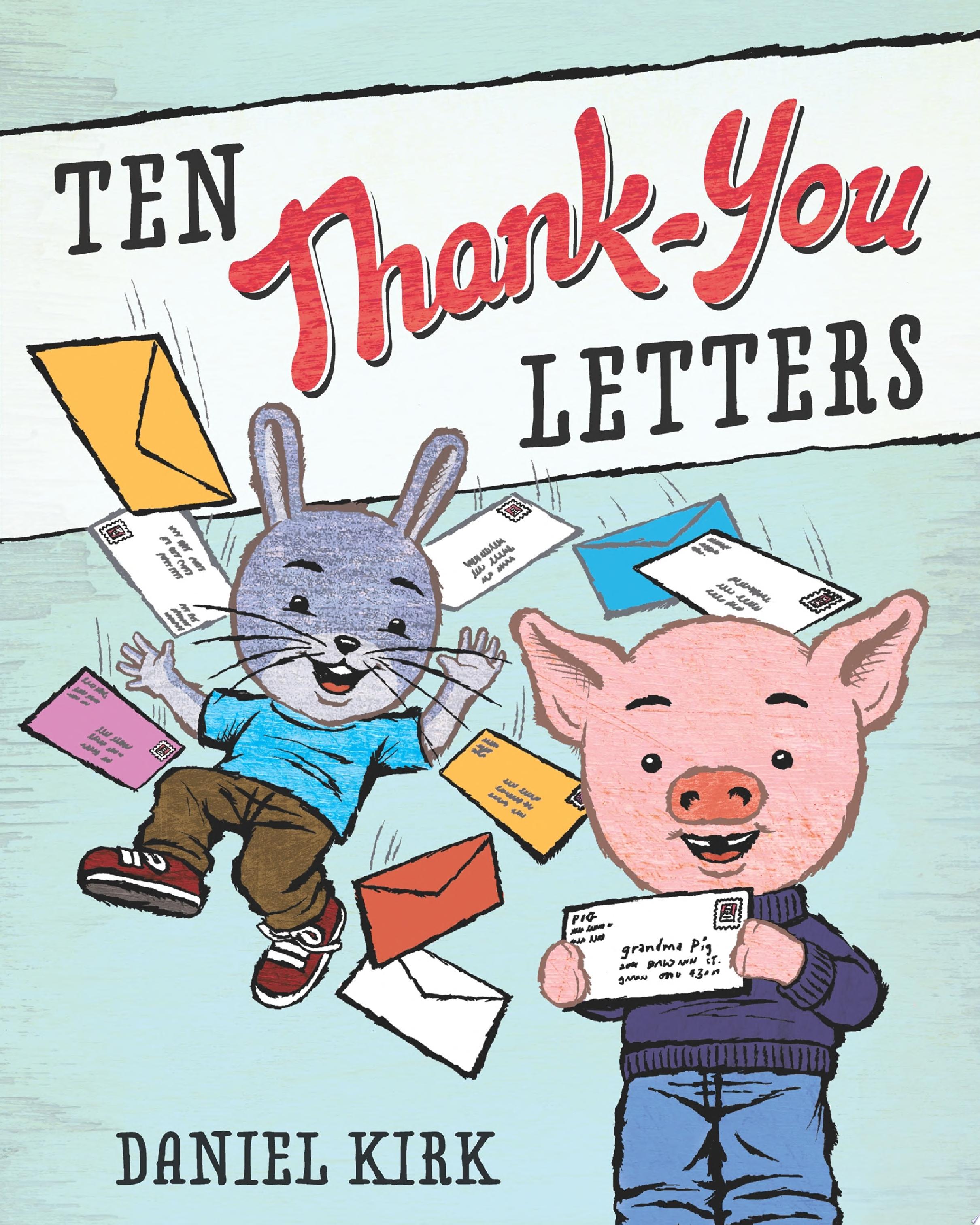 Pig is writing a thank-you note to his grandma when his friend Rabbit comes over to play. Eager to get in on the action, Rabbit writes one of his own . . . and another . . . and another . . . until his flurry of thank-you notes has Pig in a tizzy. Pig just wants to finish writing his note in peace! Fortunately, Rabbit’s last thank-you note reminds Pig how lucky he is to have Rabbit as a friend.