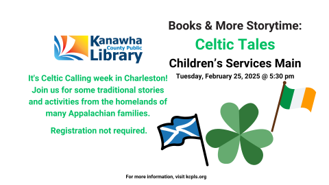 It's Celtic Calling week in Charleston! Join us for some traditional stories and activities from the homelands of many Appalachian families. Registration not required.