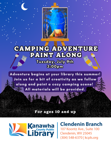 Adventure begins at your library this summer! Join us for a bit of creativity as we follow along and paint a cozy camping scene! All materials will be provided.