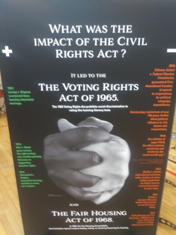 All ages are invited to view the traveling interactive exhibit, "Celebrating the 60th Anniversary of the Civil Rights Act of 1964", designed by Eve Faulkes and created by the Community Coalition for Social Justice of Morgantown, WV. It will be on display in the 4th Floor Jacobson Tower area of the Main Library through February in observance of Black History Month.