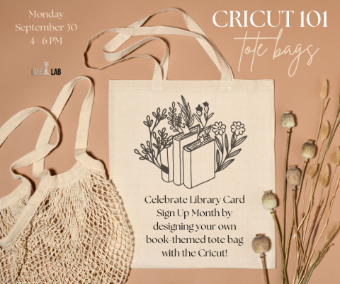 Celebrate Library Card Sign Up Month in the IDEA Lab by making book-themed tote bags with our Cricut Maker 3! All supplies will be provided.