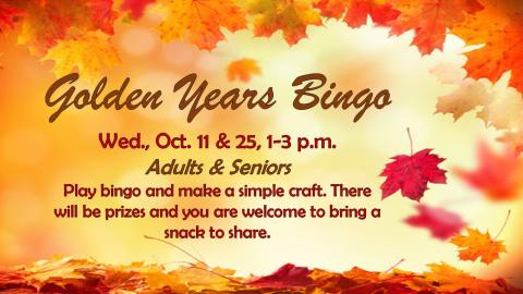 At the Golden Years program, we'll be playing Bingo and making a simple craft. Maybe you'll win a prize!