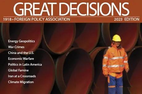 Great Decisions is America's largest discussion program on world affairs. Join us each month for a new discussion topic.