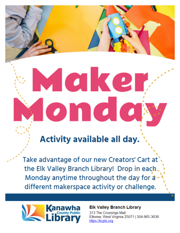 Take advantage of our new Creators' Cart at the Elk Valley Branch Library! Drop in each Monday anytime throughout the day for a different makerspace activity or challenge.