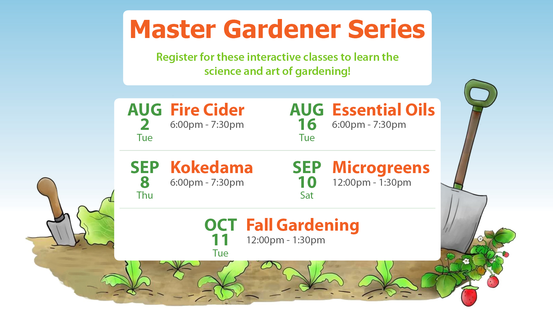 What vegetables can you grow in the fall and throughout the winter? In this class, we will explore cold-weather crops and share other fun ideas.