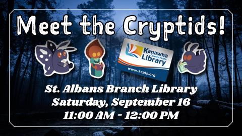 Are you fascinated by all things cryptid like Bigfoot or Mothman? Do you enjoy Appalachian folklore of the mysterious? Are you not familiar with what is a cryptid? Then this presentation is for you! Come to the St. Albans library to hear about local cryptids and cryptids around the world!