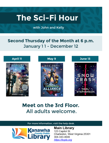 Join us for a book group dedicated to the science fiction and fantasy genre. We will be meeting at Taylor Books in downtown Charleston! Check back for more details.