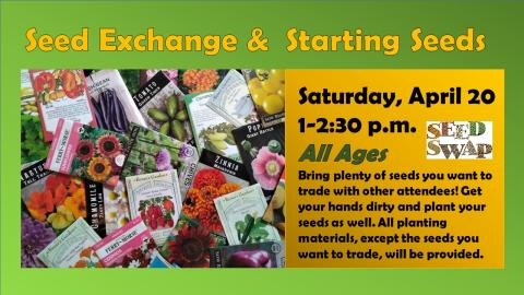 Join Ms. Cathy for this special spring program! Bring plenty of seeds you don't want and trade them with other attendees or what the library has on hand. Start some seeds while chatting with others. All materials will be provided except whatever seeds you want to trade.