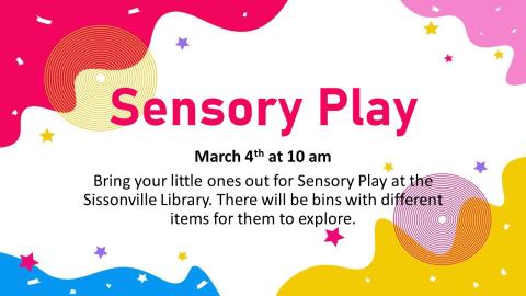 Bring your little ones out for Sensory Play at the Sissonville Library. There will be bins with different items for them to explore.