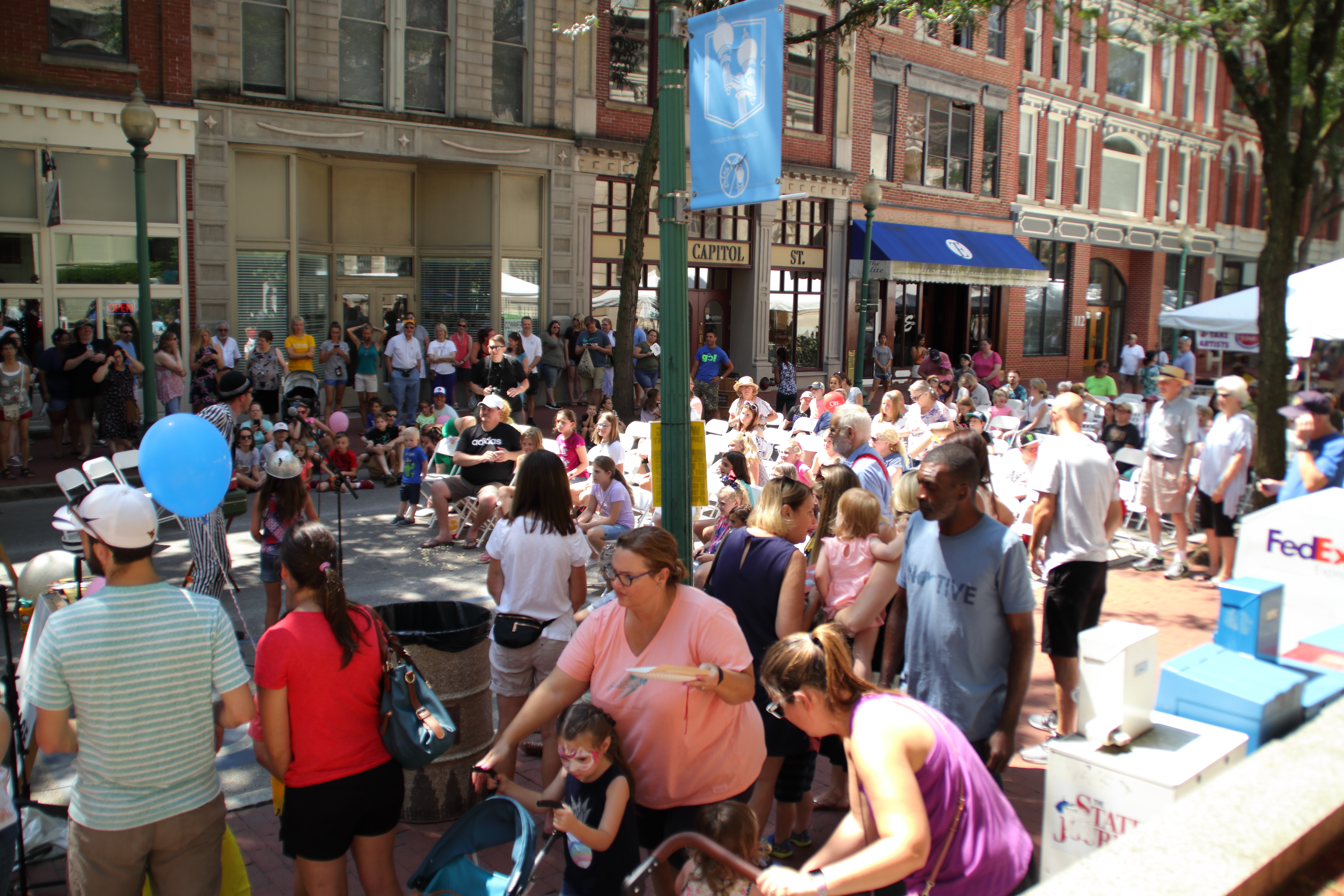 The Capitol Street Art Fair is part of Charleston's 15-day FestiVALL celebration each June. KCPL took part by presenting children's programs in the library, setting up a used book sale, providing kids games on the library plaza, and offering free refreshments on Capitol Street.